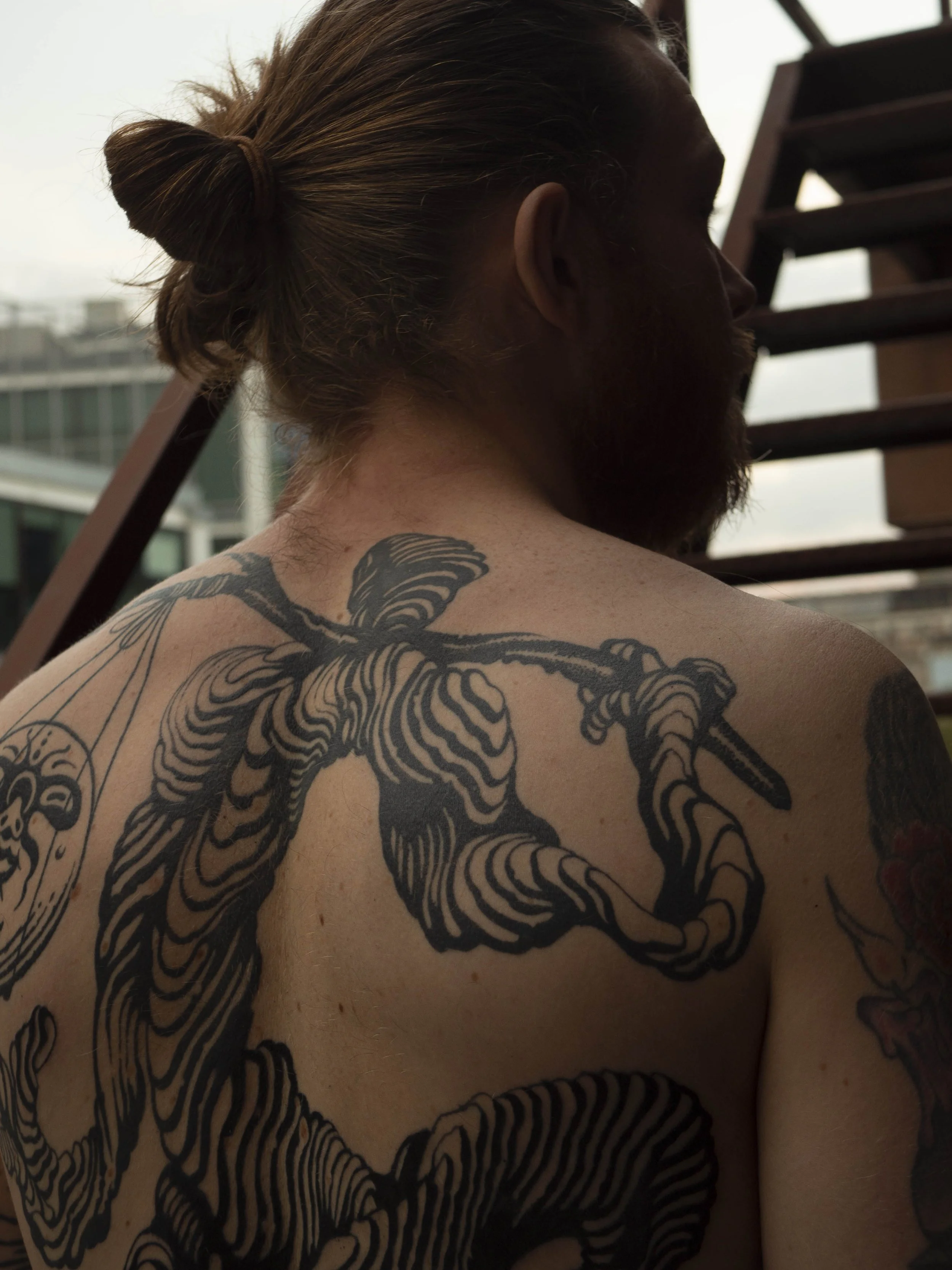 His creative mediums include tattooing, painting and, more recently, sculpture. He tends to use painting and ceramics for abstract and spontaneous expression, and tattooing and drawing for more premeditated and figurative representations. Throughout his creative processes, he meticulously explores the limitations of each technique and the changes that occur when transitioning between them.